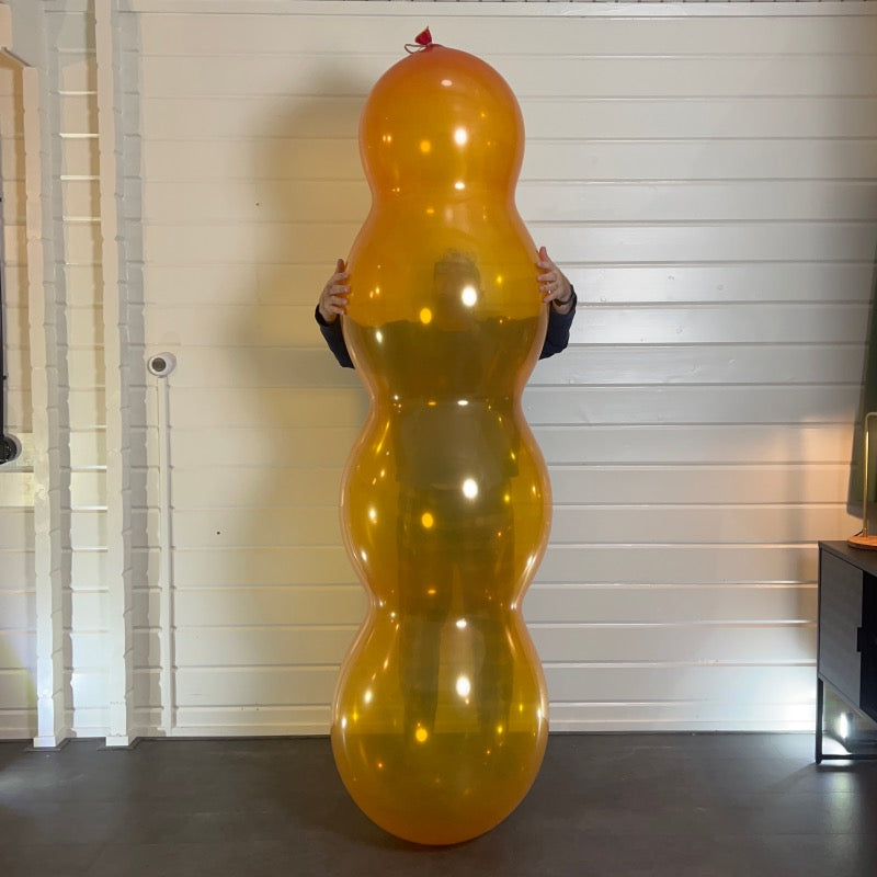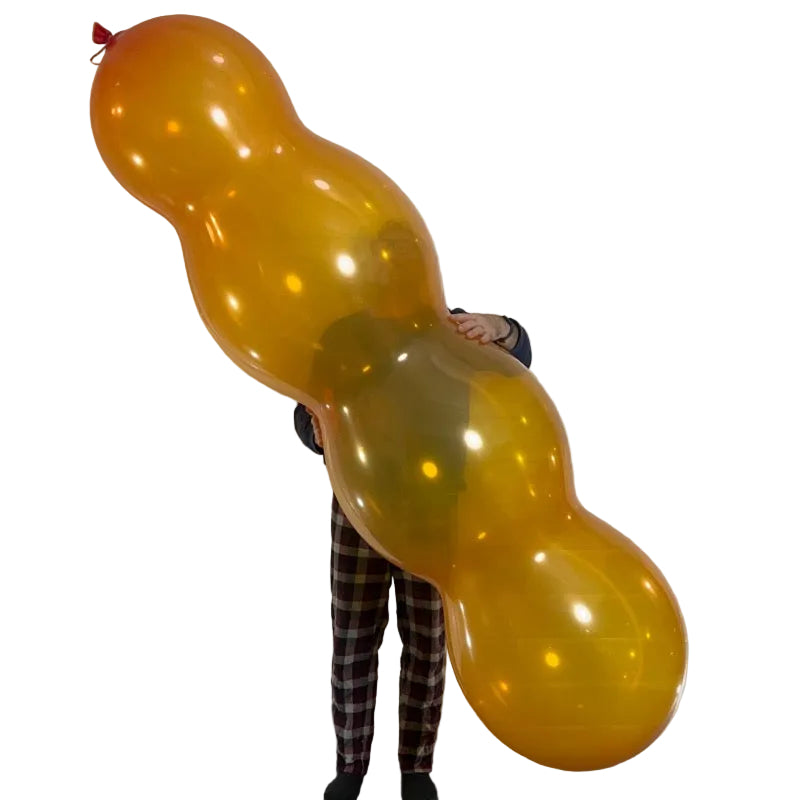 This innovative airship balloon, designed by MyStame and refined by Rich Ball, features four distinctive bumps. The former measures over 85cm × 14cm. The inflated balloon measures 255cm x65cm on the first inflation and will get even bigger with each additional inflation. With proper full potential inflation this balloon will reach 300cm x 75cm on the first inflation.